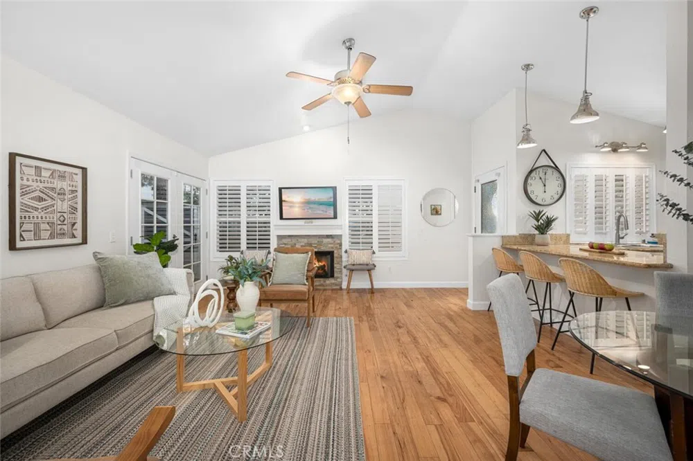 Nestled on a corner lot in a peaceful cul-de-sac in Rancho Cucamonga's desirable Victoria neighborhood, this charming 3-bedroom ranch-style home offers comfortable living in a prime location. Entering into the vibrant living space with vaulted ceilings and an open-concept layout, you'll be greeted with natural light flooding through the many windows dressed with plantation shutters and French doors. The stunning gas fireplace with stack stone detailing create a warm and inviting vibe perfect for entertaining or for cozy nights inside. The kitchen features white cabinets, granite countertops, stainless steel appliances, and a convenient breakfast bar, perfect for casual meals or extra seating. Moving on to the primary bedroom, you'll find a generous amount of closet space with exquisite French doors that lead out to the serene and beautifully landscaped backyard. The expansive and remodeled bathroom is truly a spa-like retreat with a large soaking tub, walk-in shower and a newer vanity with granite countertops and newer fixtures. This home also has an attached two car garage with interior access in to the home for additional ease and functionality. Ideally located near popular biking and walking trails, this home is perfect for outdoor enthusiasts. Additionally, its proximity to local parks, schools, and shopping centers, including the popular Victoria Gardens outdoor mall, offers both convenience and accessibility. With picturesque tree-lined streets and stunning mountain views throughout the neighborhood, this home is truly a retreat. Don’t miss this opportunity to own this bright, airy and move-in ready home in a prime location-it's truly a must see!