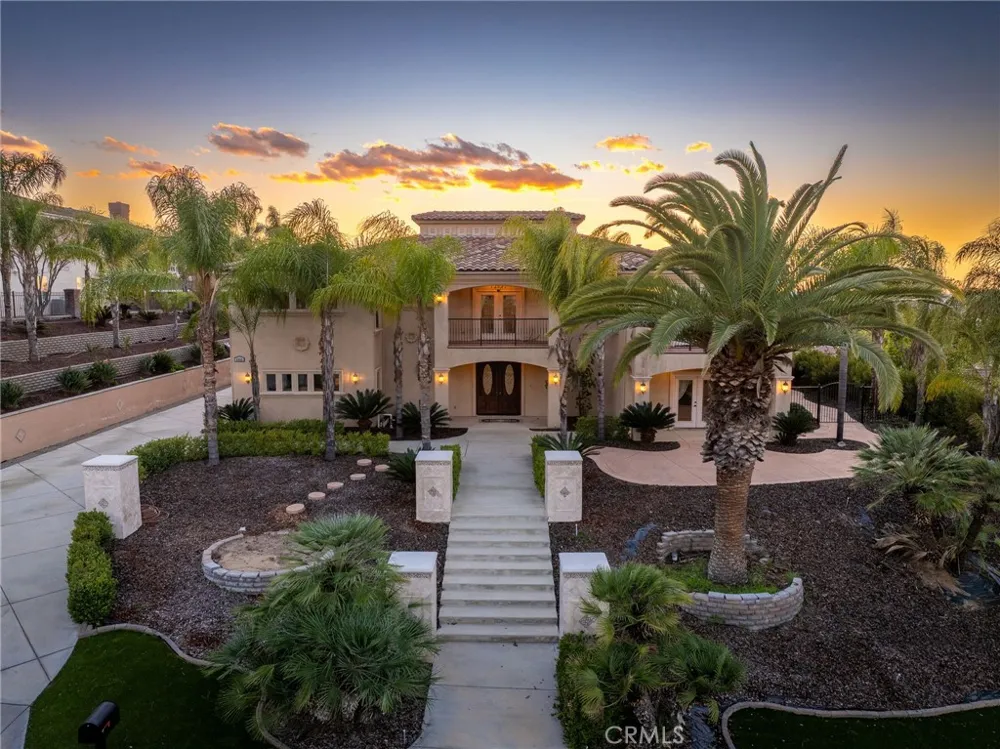 **ALESSANDRO HEIGHTS – WYNDHAM HILL ESTATES** Perched on a terraced homesite, this custom Mediterranean-style villa exudes grandeur and elegance. Step through the soaring two-story foyer, flanked by dual staircases, into expansive living spaces designed to impress. The formal living room features a cozy fireplace, while the formal dining room sets the stage for memorable gatherings. A unique two-level study, complete with a spiral staircase and its own fireplace, offers an inspiring retreat. The heart of the home is the massive kitchen, boasting not one but two islands, a bright breakfast room, and an adjoining family room—perfect for entertaining or relaxed family living. Two main-floor bedroom suites, each with a private bath and walk-in closet, offer convenience and comfort. Ascend the grand staircase to discover a secondary family room framed by striking windows that showcase breathtaking city light and mountain views. The upper level also features four additional bedroom suites, including the luxurious primary suite. This sanctuary includes sweeping views, its own fireplace, a spa-like bath, and a spacious walk-in closet. The meticulously landscaped grounds are designed with low-maintenance and eco-conscious considerations. A sparkling pool and spa are surrounded by mature trees and hedges, providing ample privacy for outdoor enjoyment. Additional features include a large indoor laundry room, an oversized four-car garage, generous off-street parking, and potential RV storage. With unobstructed views and impressive architectural presence, this estate is a masterpiece of design and functionality, ready to welcome you home.